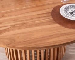 Imprégnez votre salle à manger d’une élégance sophistiquée avec cette séduisante et originale table ronde en teck de 150 cm de diamètre.
