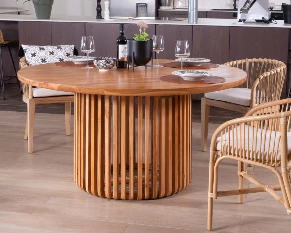 Cultivez l’art de recevoir avec sophistication grâce au charme et à l’originalité de cette table en teck ronde de 150 cm.