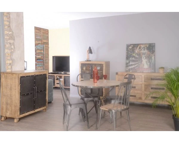Issue de la collection « Malmô » inspirée du style industriel, cette table vous séduira par sa fonctionnalité et son adaptabilité qui lui confère de multiples avantages selon son usage. Petite table pliable de caractère, elle confèrera une dimension industrielle à l’espace qu’elle occupera. Sa forme ronde s’adapte aisément à tout type d’espace (cuisine, salon, véranda, etc…).
