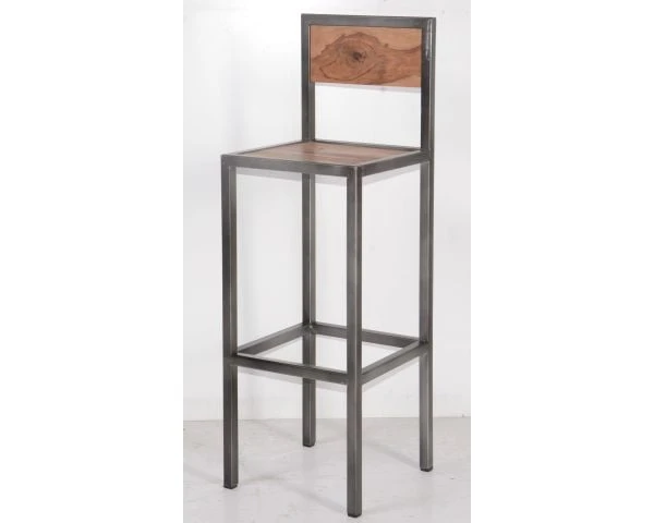 Ce superbe tabouret apportera à votre intérieur un style à la fois ethnique et industriel et une décoration rétro unique à votre salon ou à votre cuisine. Alliance parfaite entre le bois exotique sombre de palissandre et le métal noir en finition industrielle, cette assise est créée de manière artisanale et éco-responsable. La chaise de bar est suffisamment haute (105 cm) pour pouvoir convenir à tous les plans de travail et bars, et la profondeur de 35 cm de l’assise en bois, dotée également d’un dossier, est confortable.