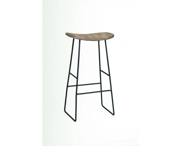Ce tabouret de bar est constitué de métal noir et de bois massif. Il est sobre et design à la fois. La forme incurvée de son assise offre un certain confort. Il peut parfaitement se glisser sous un bar ou une table haute lorsqu’il n’est pas utilisé. Son assise est constituée de différents morceaux de bois massif exotique tel que le palissandre, le manguier ou l’acacia. Ces morceaux proviennent de bois de récupération et donc chaque pièce est 100% unique.