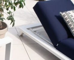 Compléter votre achat d’exception avec cette têtière au coloris bleu foncé, coordonné à la collection de bains de soleil « Nusa Pedina ».