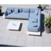 Matières : Tissu Sunbrella® gris clair, garnissage mousse QuickDry, structure et pieds aluminium blanc