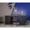 Toutes uniques, les pièces « Batti » signent leur singularité par l’emploi d’anciens bois massifs restaurés avec passion mais qui gardent sur eux la patine du temps et leur histoire. Et cette jolie vitrine bleutée ne dira pas le contraire. Son élégance n’a pas son pareil pour meubler avec délicatesse votre salon, entrée, bureau, patio couvert… Exposez fièrement vos plus belles trouvailles et mettez-les en scène derrière les 3 portes vitrées. Les 2 portes inférieures s’ouvriront sur 2 étagères tandis que la vitre supérieure vous fera profitez d’un large caisson haut. Avec des dimensions de 68 x 38 x 145 cm (longueur x profondeur x hauteur), ce meuble d’appoint trouvera naturellement sa place dans l’espace de votre choix. Si vous aimez l’Inde envoutante, sa belle patine bleue vous fera penser aux rues du Rajasthan dont elle arrive. Vous craquerez pour son allure vintage, ses détails en métal, la couleur naturelle du bois qui ressort par endroit.. Pouvant aussi bien servir de petite bibliothèque, de vitrine, de vaisselier, de meuble d’entrée, de meuble d’appoint… ce meuble a tout bon.