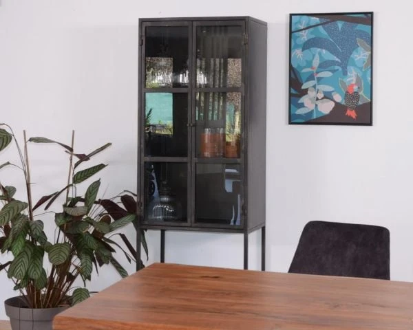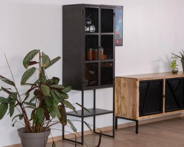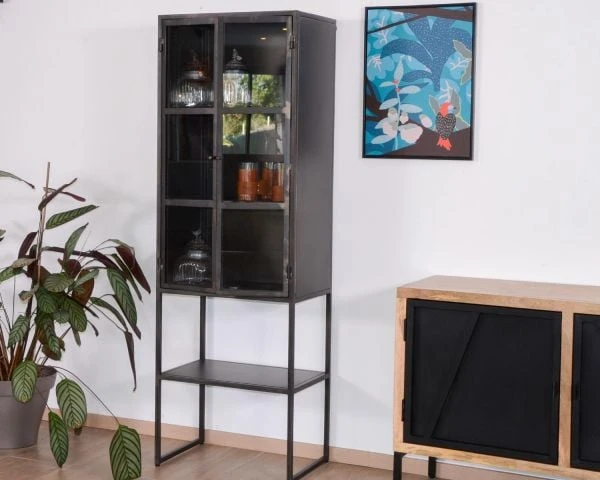 Livrée montée, facile à entretenir, charismatique et se mariant à de nombreux univers, cette jolie vitrine en métal noir est parfaite. On l’associe facilement aux autres meubles de la collection « Black Cook » et on affirme un style fort et puissant dans son appart ou dans sa maison. Le noir allant « avec tout » vous aurez également plaisir à vous amuser avec des accessoires de couleur pour twister votre déco ou vous ferez le choix d’ancrer votre univers dans les codes des ateliers. Murs de briques, sièges en cuir vintage, lampadaire en alu… seront de merveilleux compagnons à ce meuble haut qui, à lui seul, ne manquera pas de susciter l’attention.